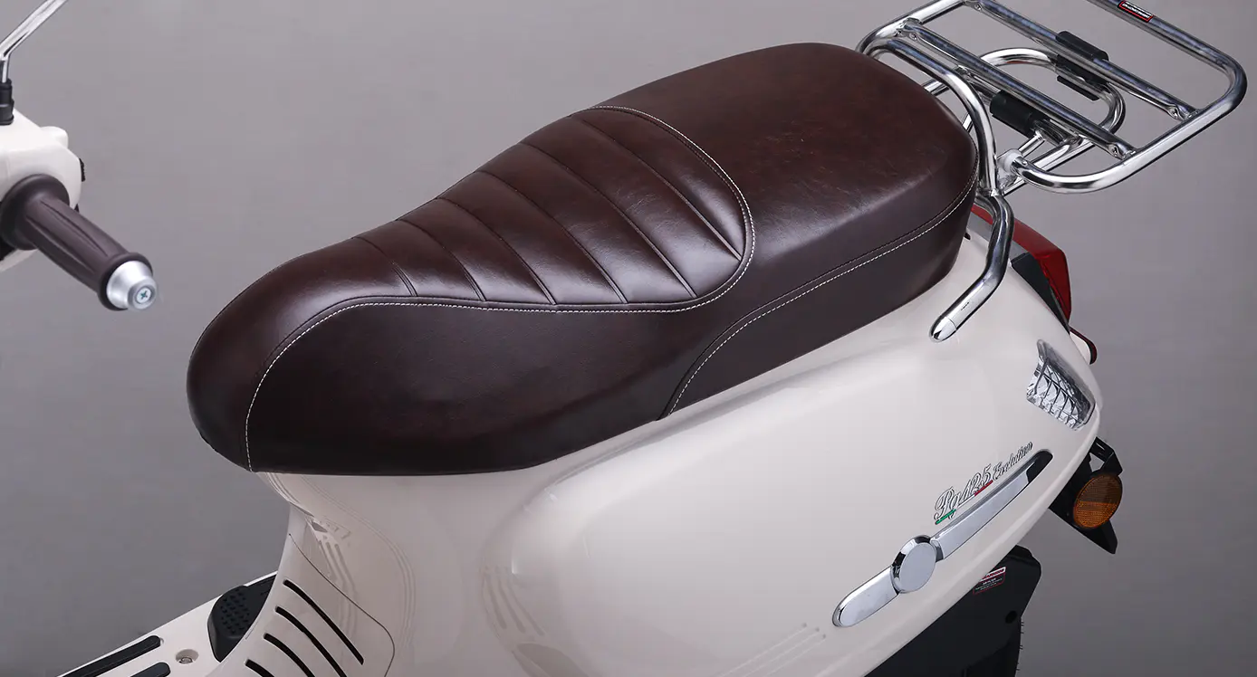 High resilience stitched lychee leather seat cushion, non-slip, strong resilience, long-term riding without deformation. The seat cushion is extended to 680MM, so even a family of three will not feel crowded.