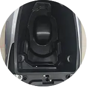 Well-designed seat height bring a more comfoftable experience to driver. The quick-detachable bucket can accommodate the entire helmet, providing ample storage space.